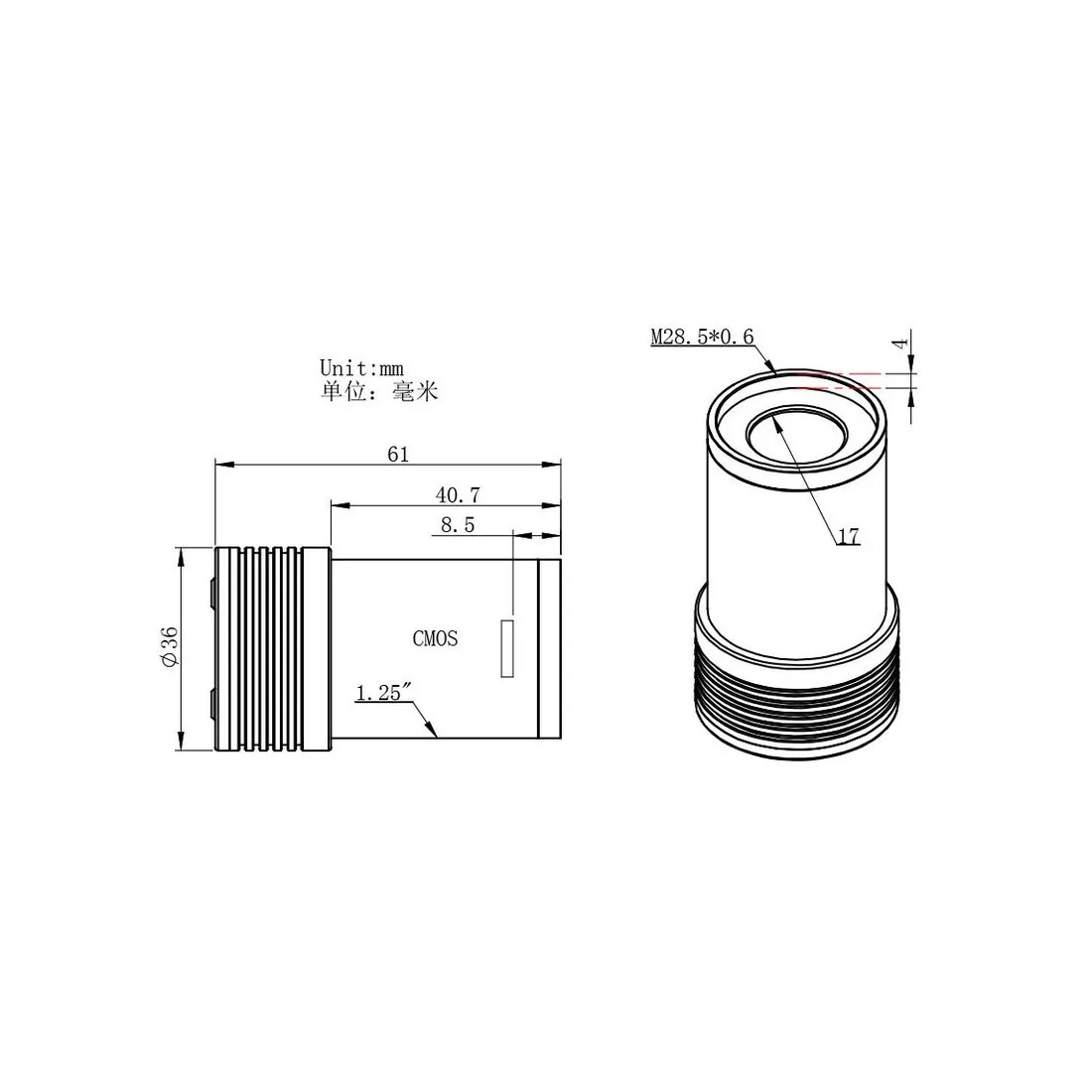 - 1 adaptateur M28.5x0.6 vers CS