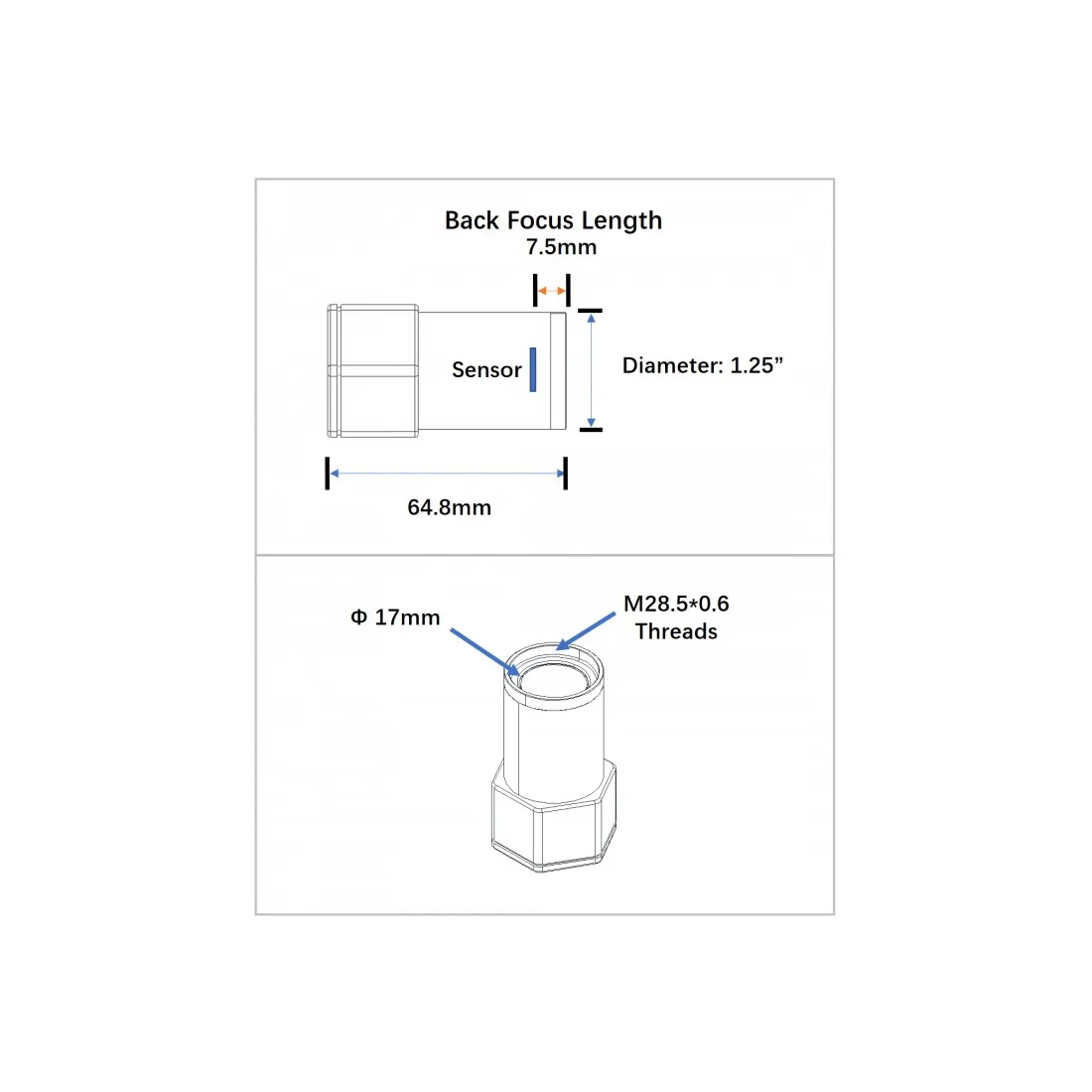 - Backfocus: 7,5 mm