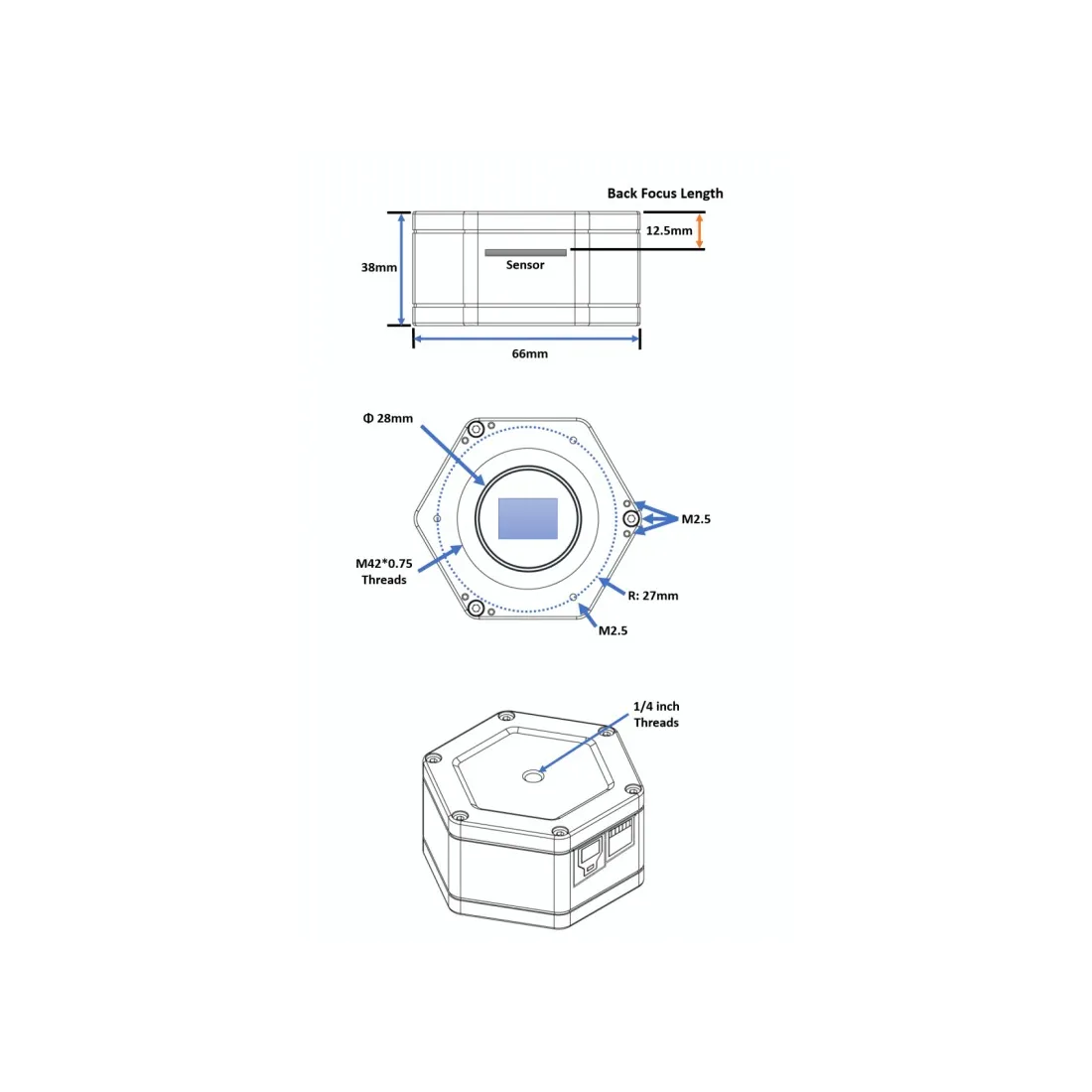 - Backfocus: 12,5 mm