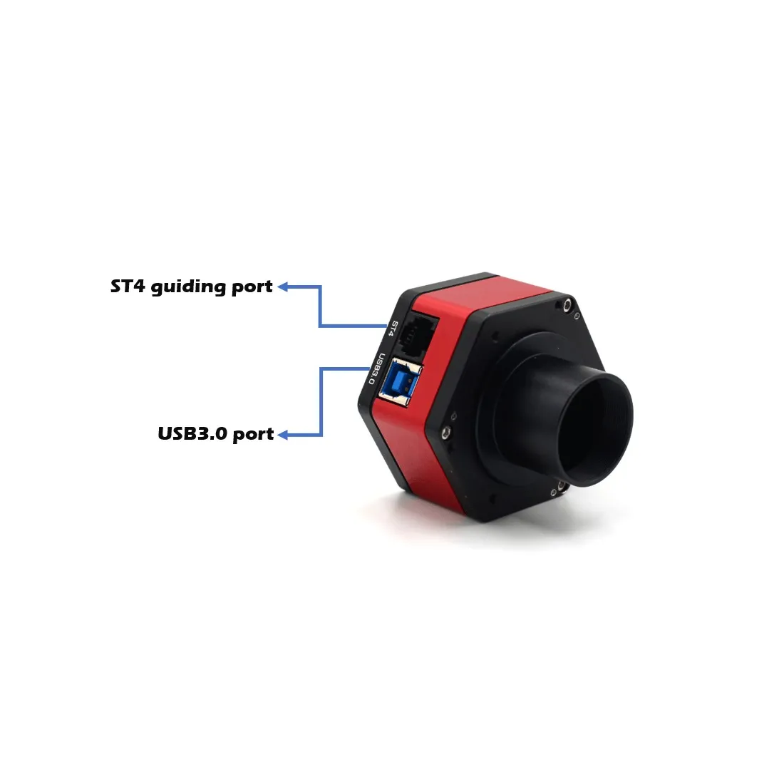 Utilisez le câble Guide ST4 pour connecter l'appareil photo et le port de guide automatique du support équatorial pour guider.