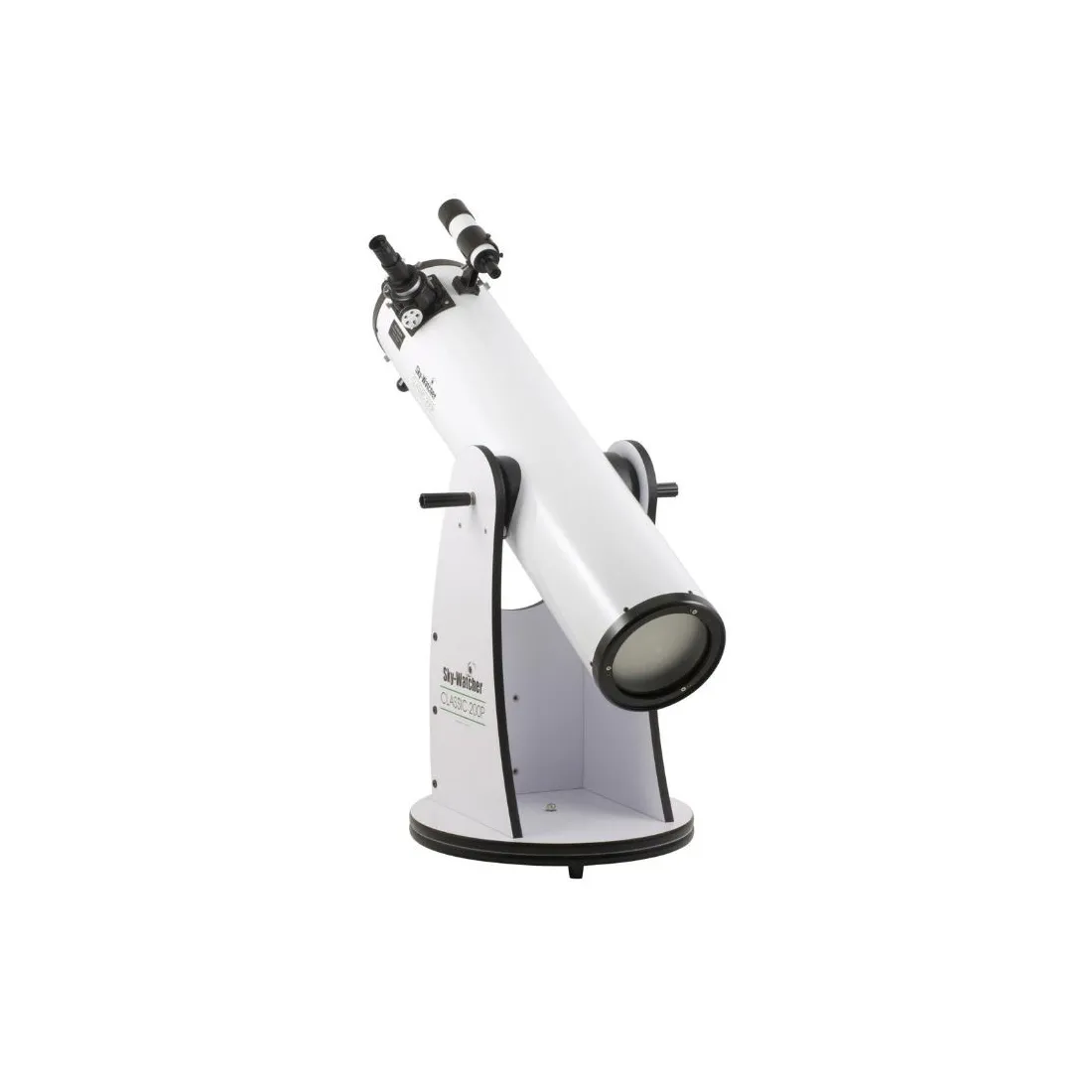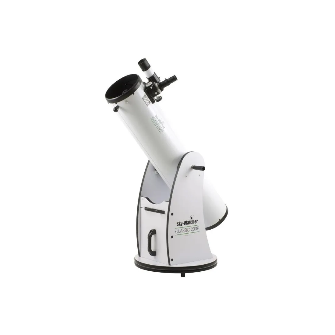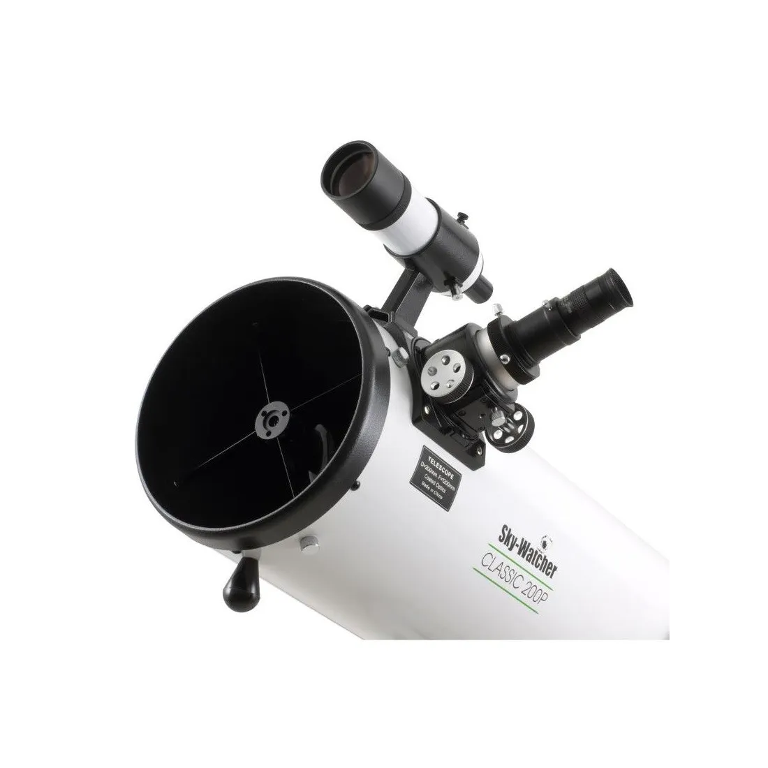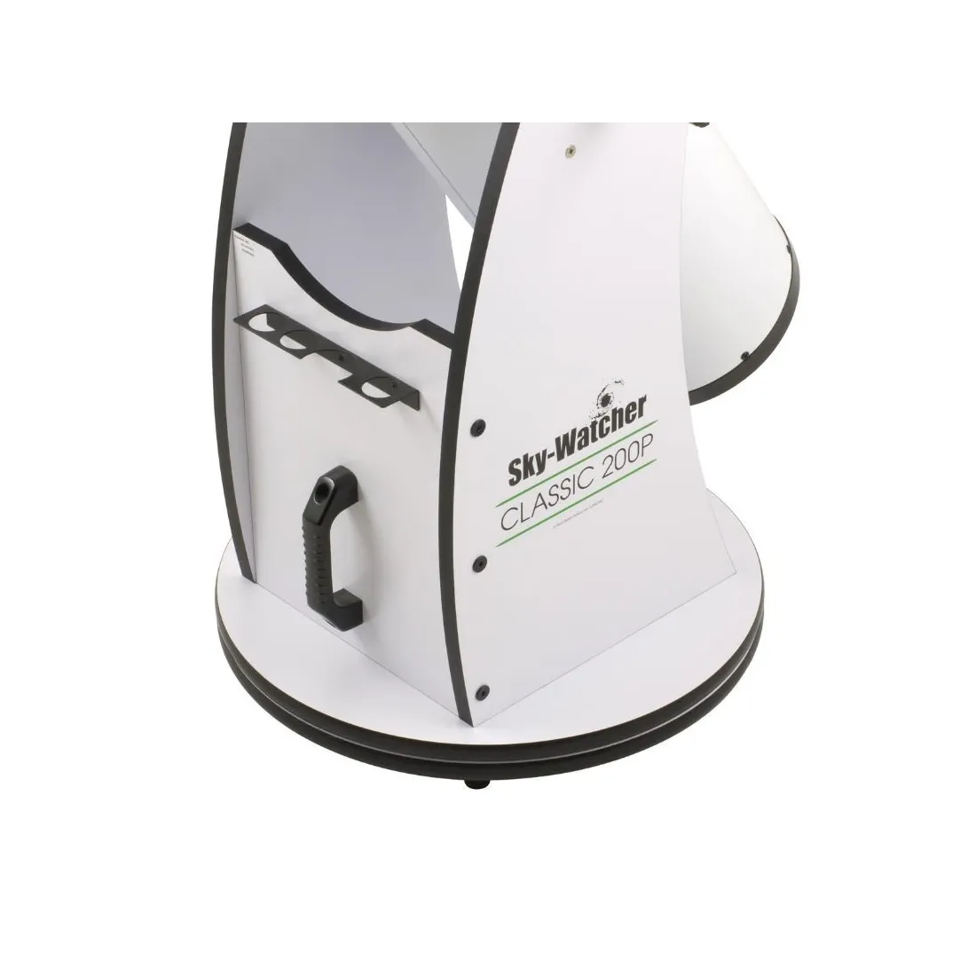 Le diamètre de ce Dobson est de 203 mm (8'') et sa distance focale, de 1200 mm. Le rapport focale/diamètre de 6, habituel sur les Dobsons, est ainsi atteint. Cette optique collecte beaucoup de lumière (816x). Lorsque le ciel est parfaitement sombre, vous pourrez voir des étoiles de magnitude 14. Son ouverture de 200mm vous ouvre les portes des objets du ciel profond, ce qui pas possibles avec des instruments plus petits. L'araignée est très fine, la diffraction est ainsi maintenue à un très bas niveau. L'obstruction s'élève à 25% en raison du diamètre du miroir secondaire (environ 50 mm).