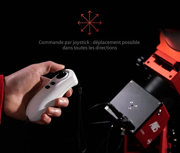 Une raquette ergonomique à joystick permet de commander facilement la motorisation double axe des montures ZWO AM