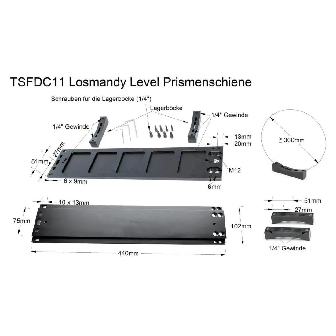 Barre à queue d'aronde TS-Optics 3" Losmandy pour tubes à partir de 300 mm de diamètre.