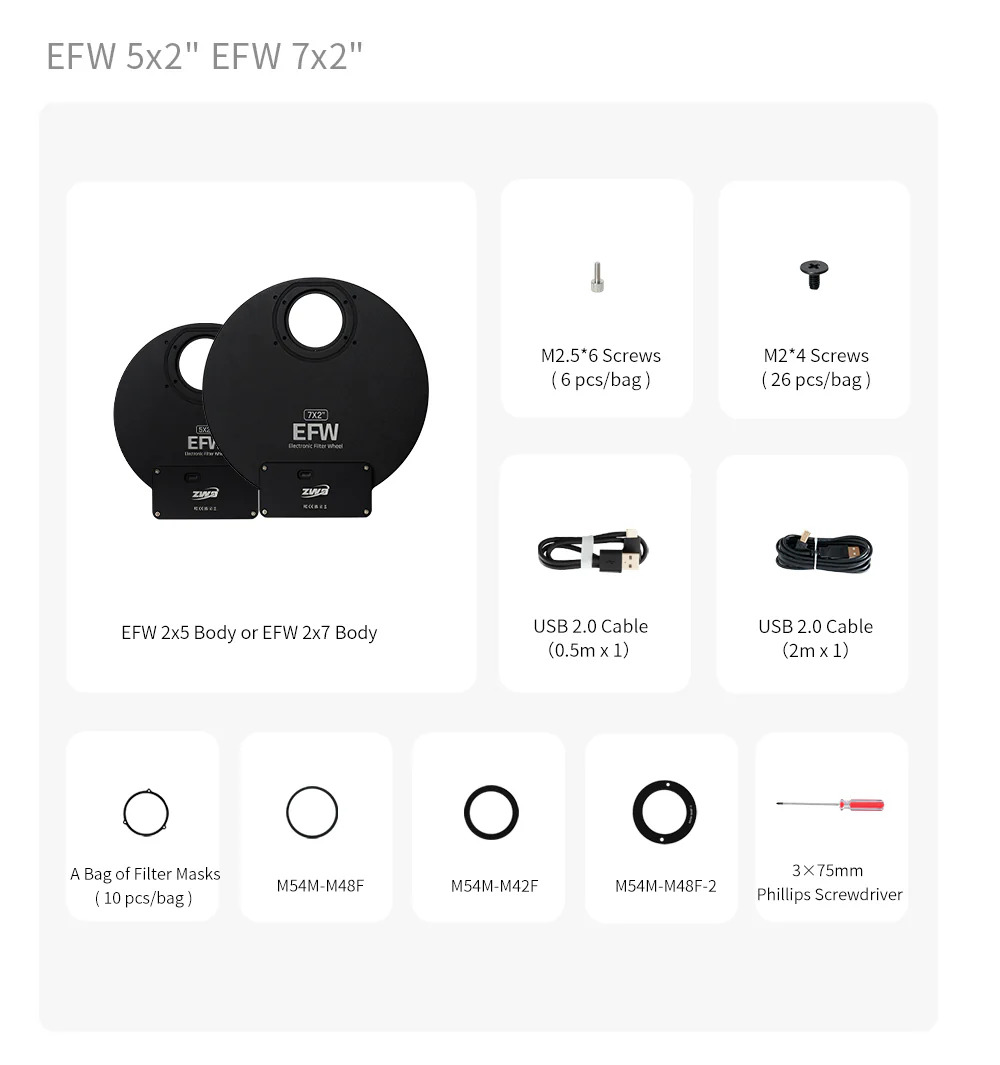 ZWO améliore en permanence ses produits et sa gamme de roues à filtres EFW vient de subir un léger lifting :